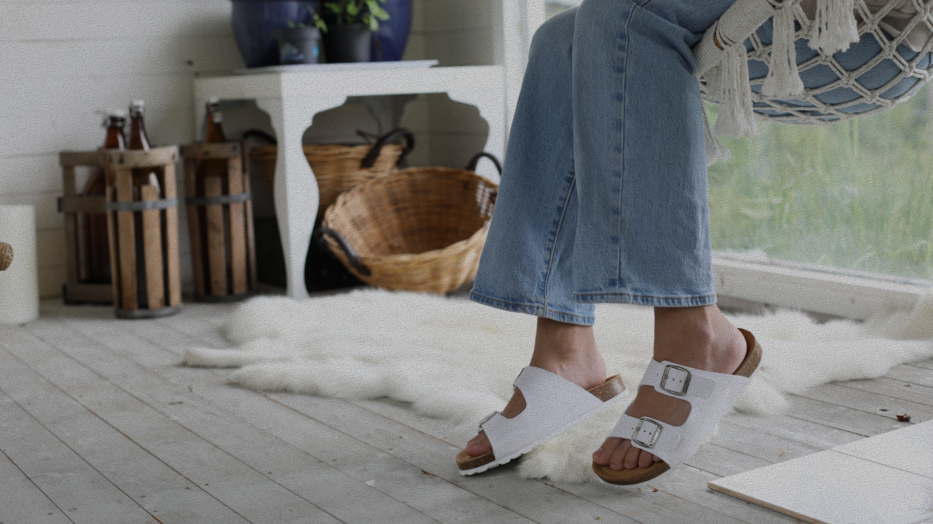 The material helps regulate our body temperature and transports moisture effectively to keep our feet warm, dry, airy and cool when needed. The natural material of sheepskin warms the feet when it is cold and cools them when it is hot. This makes your feet feel good.